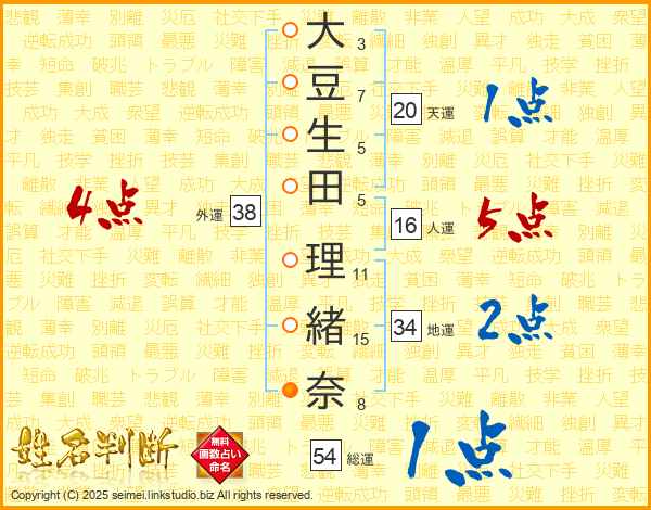 大豆生田理緒奈さんの総運は54画の1点!