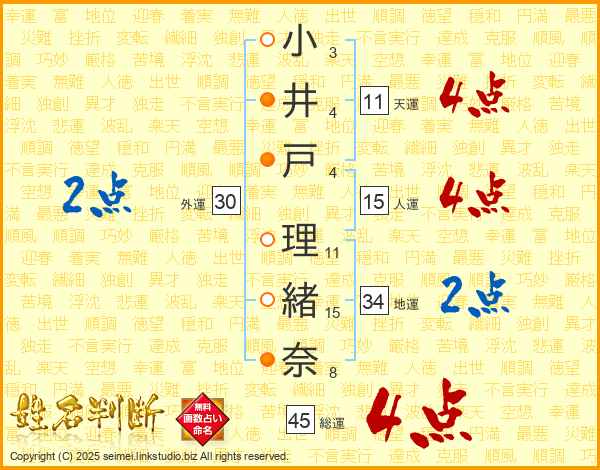 小井戸理緒奈さんの総運は45画の4点!