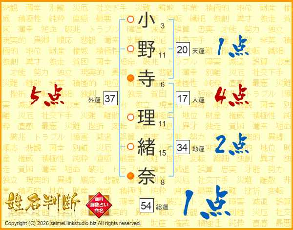 小野寺理緒奈さんの総運は54画の1点!