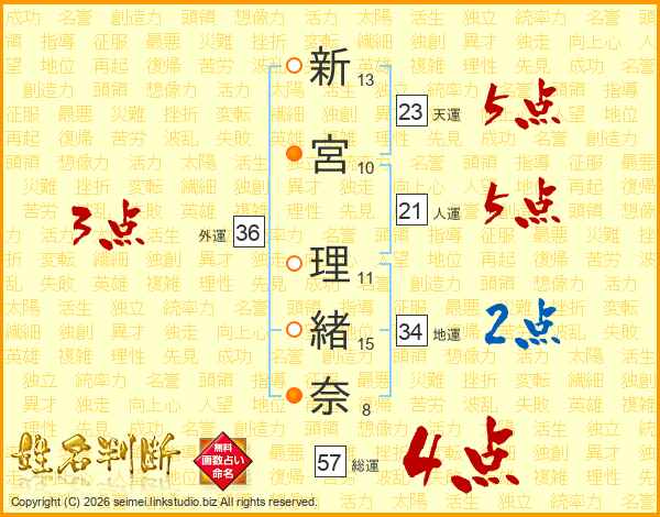 新宮理緒奈さんの総運は57画の4点!