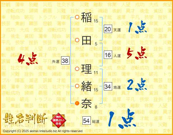 稲田理緒奈さんの総運は54画の1点!