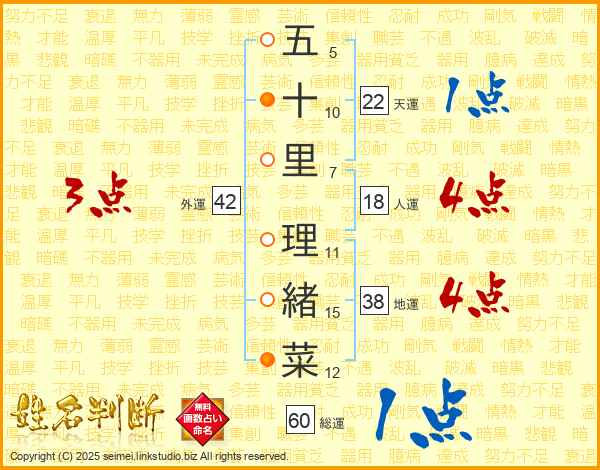 五十里理緒菜さんの天運は22画の1点!