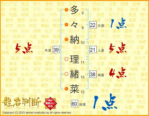 多々納理緒菜さんの総運は60画の1点!