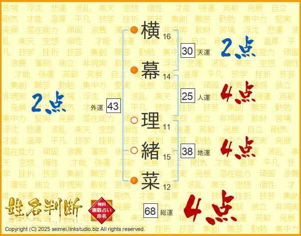 横幕理緒菜さんの人運は25画の4点!