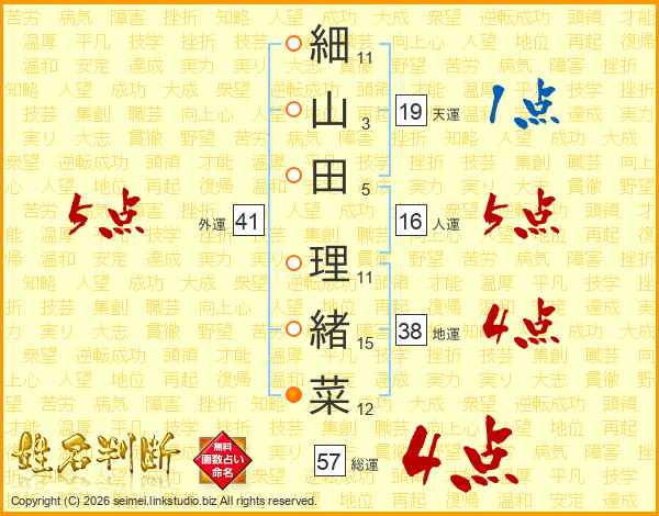 細山田理緒菜さんの総運は57画の4点!