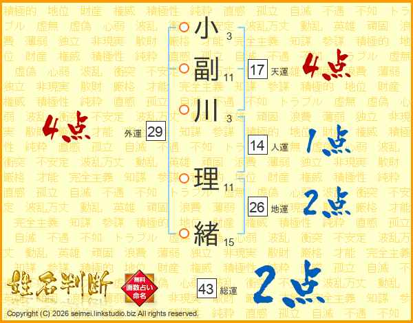 小副川理緒さんの地運は26画の2点!