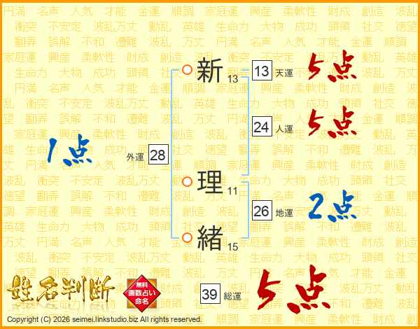 新理緒さんの総運は39画の5点!