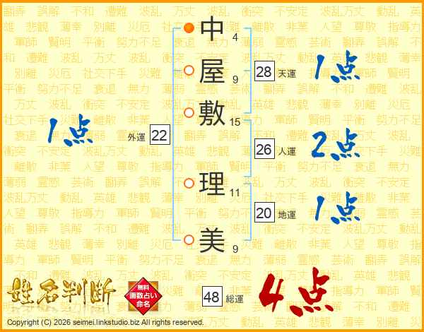 中屋敷理美さんの総運は48画の4点!