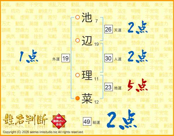 池辺理菜さんの総運は49画の2点!