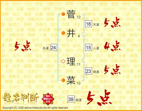 菅井理菜さんの総運は39画の5点!