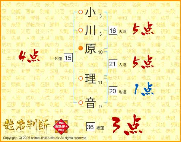 小川原理音さんの外運は15画の4点!