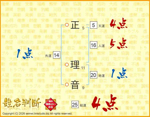 正理音さんの総運は25画の4点!