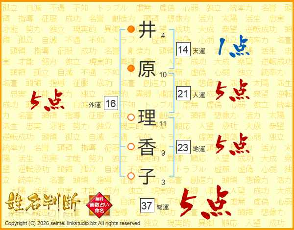 井原理香子さんの天運は14画の1点!