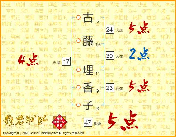 古藤理香子さんの総運は47画の5点!