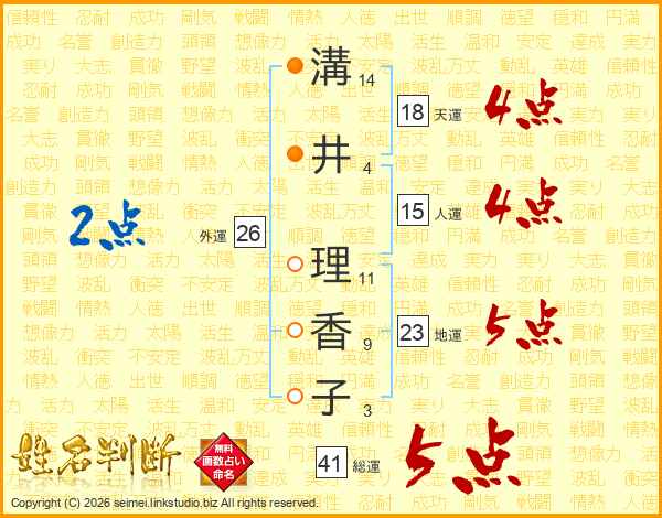 溝(14画)井(4画) 理(11画)香(9画)子(3画)