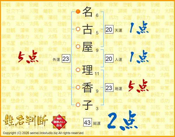 名古屋理香子さんの外運は23画の5点!