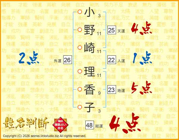 小野崎理香子さんの総運は48画の4点!