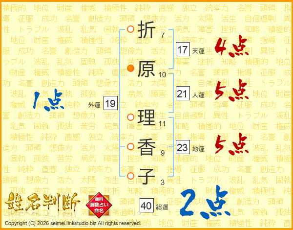 折原理香子さんの天運は17画の4点!