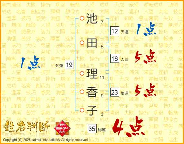 池田理香子さんの総運は35画の4点!