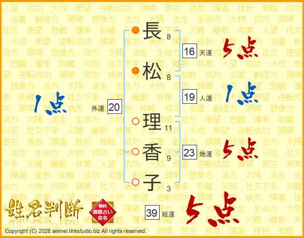 長松理香子さんの総運は39画の5点!