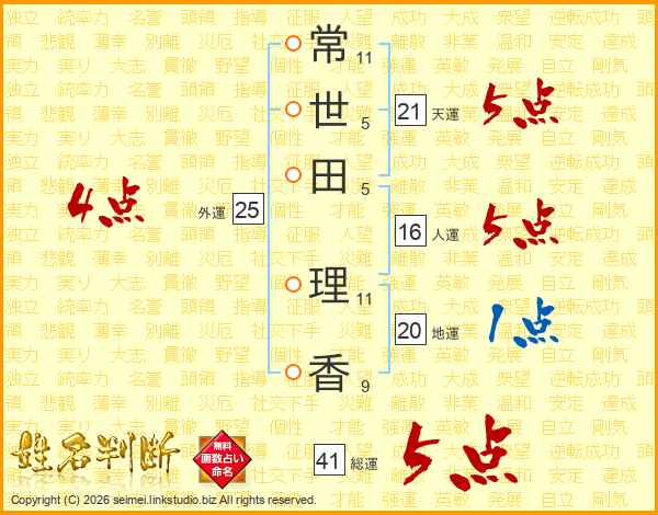 常世田理香さんの総運は41画の5点!
