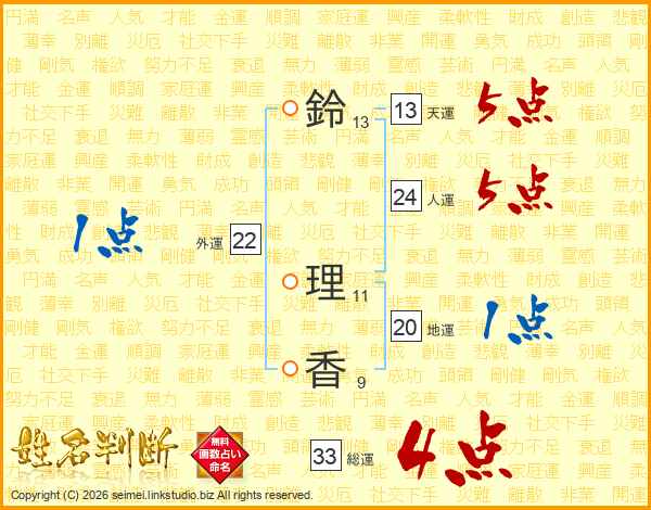 鈴理香さんの総運は33画の4点!
