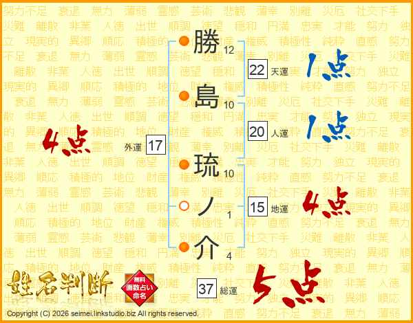 勝島琉ノ介さんの総運は37画の5点!