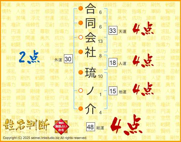 合同会社琉ノ介さんの総運は48画の4点!