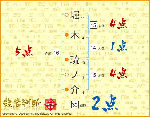 堀木琉ノ介さんの総運は30画の2点!