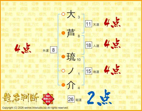 大(3画)芦(8画) 琉(10画)ノ(1画)介(4画)