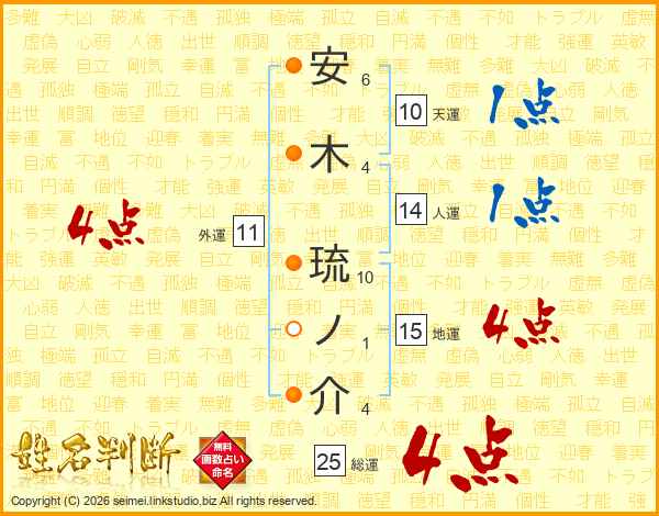安木琉ノ介さんの総運は25画の4点!