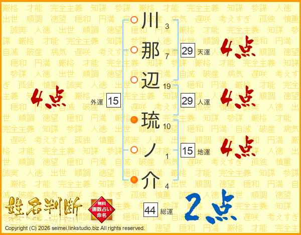川那辺琉ノ介さんの総運は44画の2点!
