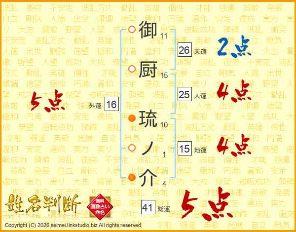 御厨琉ノ介さんの総運は41画の5点!