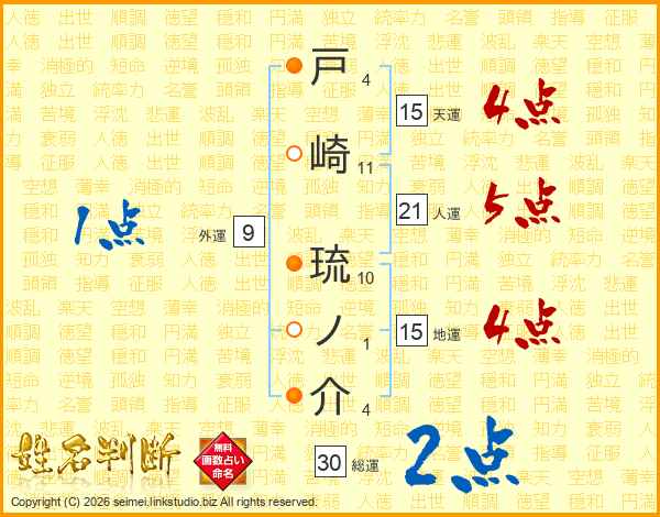 戸崎琉ノ介さんの総運は30画の2点!