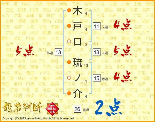 木戸口琉ノ介さんの総運は26画の2点!