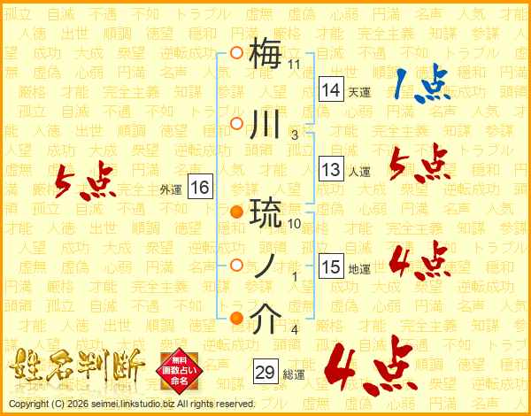 梅川琉ノ介さんの総運は29画の4点!