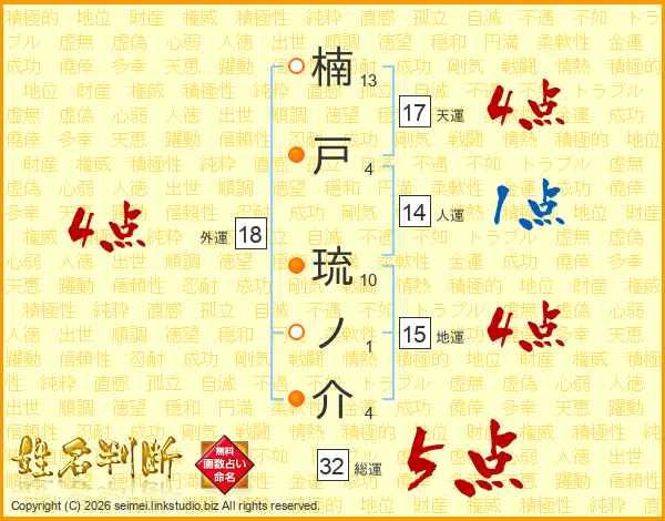 楠戸琉ノ介さんの総運は32画の5点!