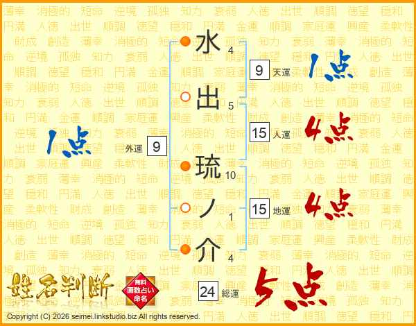 水出琉ノ介さんの総運は24画の5点!