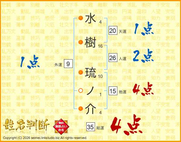 水樹琉ノ介さんの人運は26画の2点!