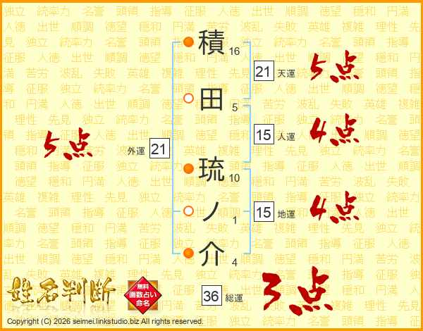 積田琉ノ介さんの総運は36画の3点!