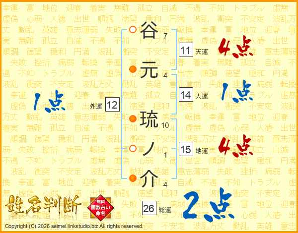 谷元琉ノ介さんの総運は26画の2点!