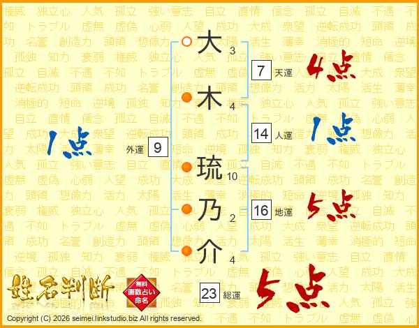 大木琉乃介さんの総運は23画の5点!