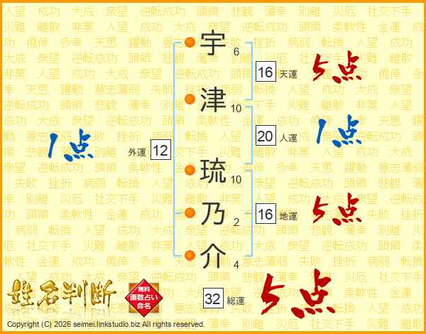 宇津琉乃介さんの総運は32画の5点!