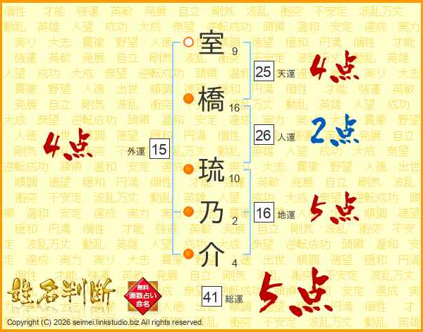 室橋琉乃介さんの総運は41画の5点!