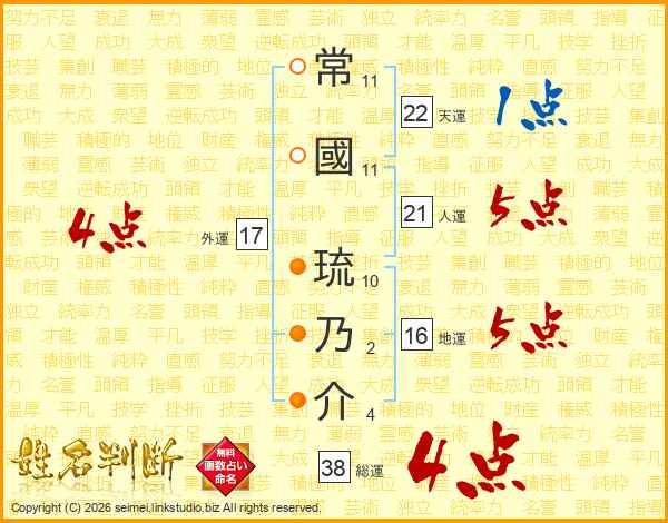常國琉乃介さんの総運は38画の4点!