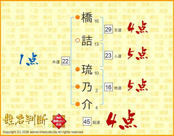 橋詰琉乃介さんの総運は45画の4点!