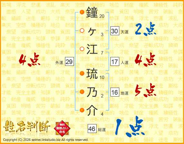 鐘ヶ江琉乃介さんの総運は46画の1点!