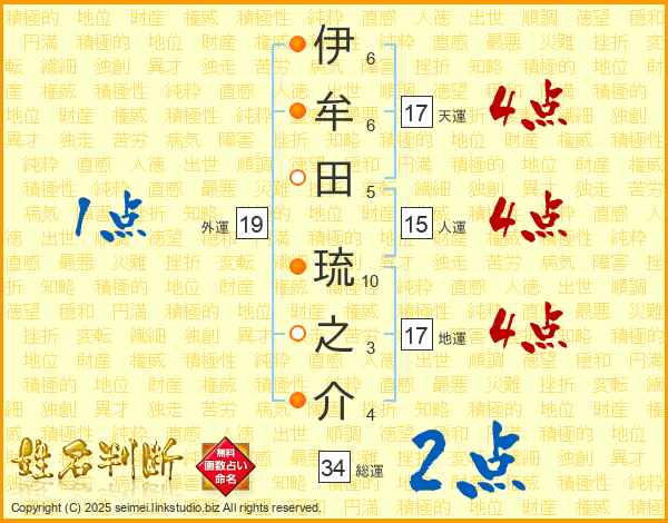 伊牟田琉之介さんの天運は17画の4点!