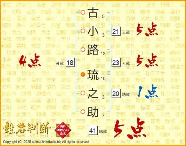 古(5画)小(3画)路(13画) 琉(10画)之(3画)助(7画)
