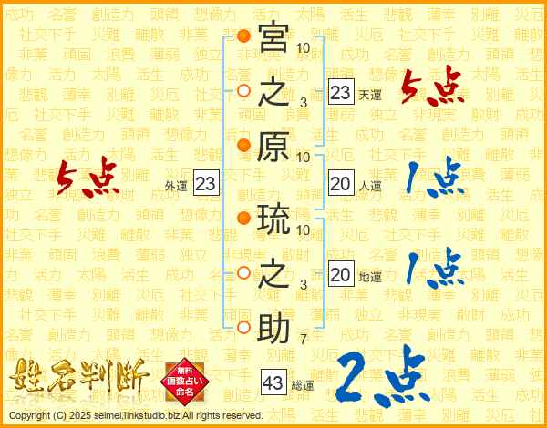 宮之原琉之助さんの外運は23画の5点!